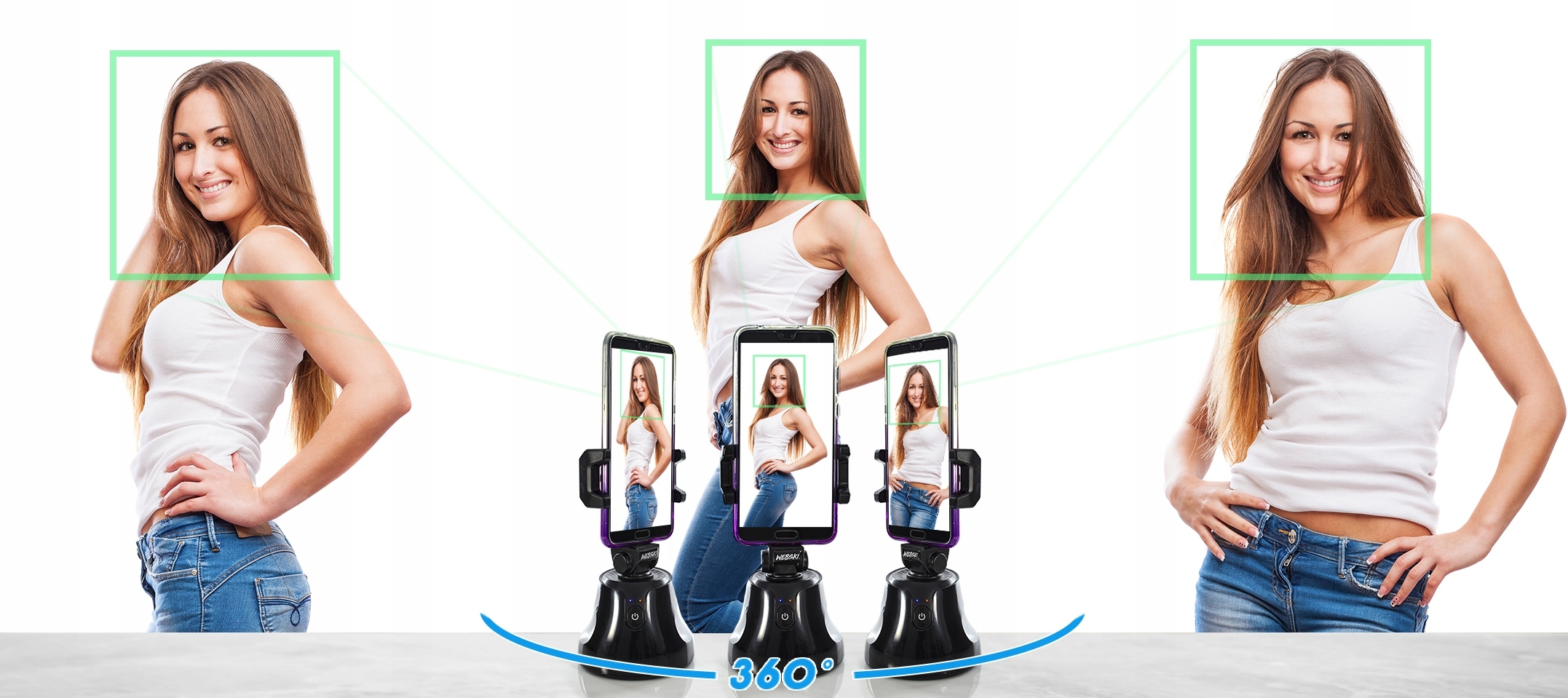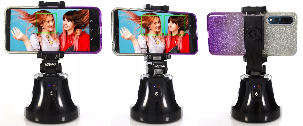 Hledáte způsob, jak bezchybně natočit video sdělení pro své sledující či reklamní video prezentaci? Ať tak či tak, zkuste to pomocí tohoto držáku na telefon, který je bezdrátový,napájený pouze třemi AA bateriemi. Součástí držáku je také praktická rukojeť, která otáčí telefon tak, aby jeho kamera sledovala tvář nahrávané osoby. Otočná rukojeť se otáčí o 360 stupňů a pomocí aplikace sleduje jednu či více tváří nebo objekt, který prezentujete. Tento rotační držák je nesmírně užitečné zařízení, které se skvěle hodí pro prezentace, videokonference či reklamní prezentace oblečení, kosmetiky, šperků v různých prodejních skupinách. Pořizujte krásná, plynulá panoramata bez použití rukou. Instalace a použití tohoto rotačního držáku je naprosto snadná, stačí jej pouze přes Bluetooth spárovat s vaším chytrým telefon a stáhnout si potřebnou aplikaci, díky které můžete nahrávat ty nepropracovanější video a současně je i upravovat.