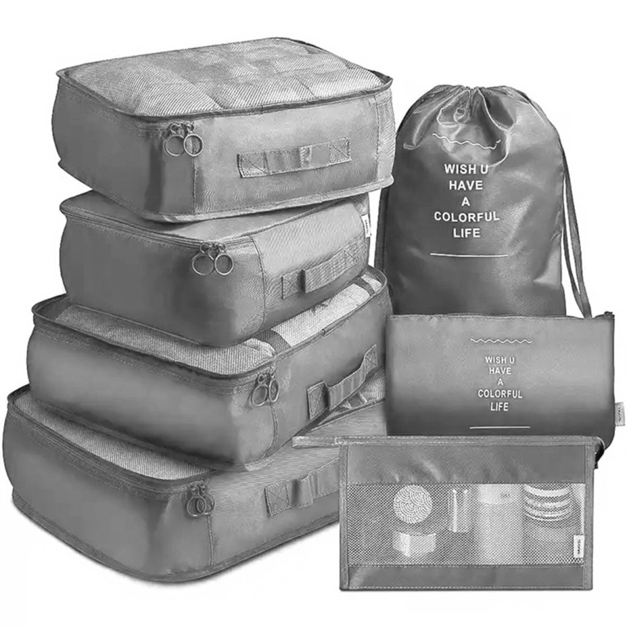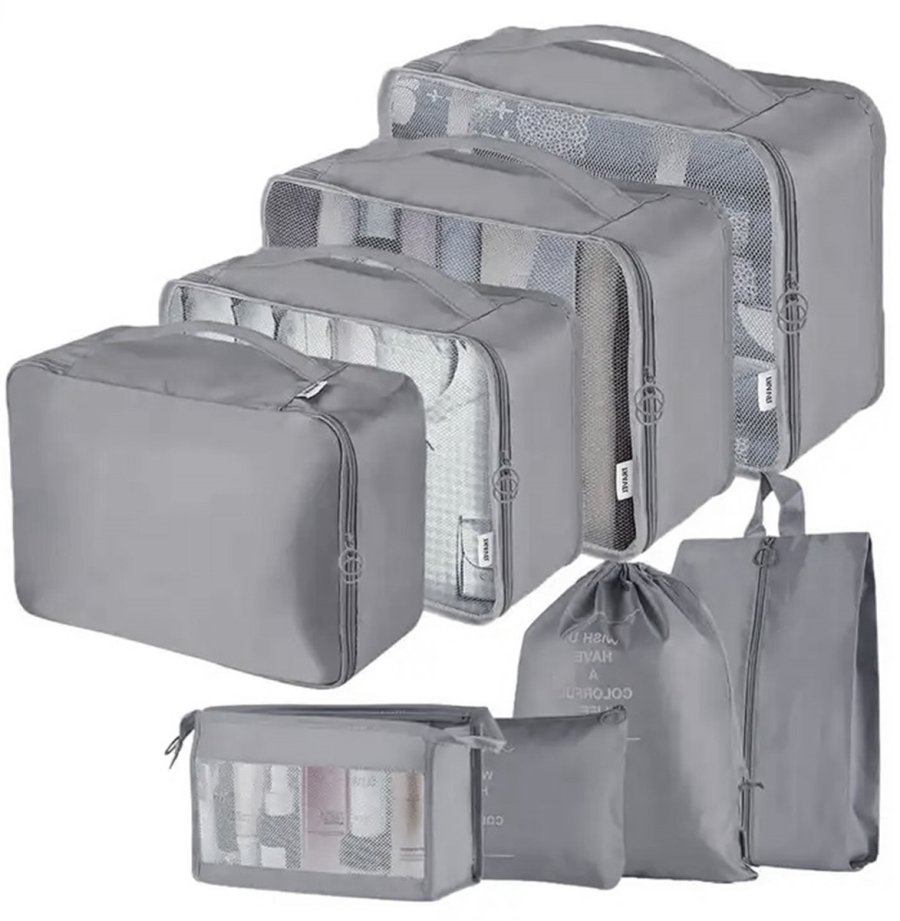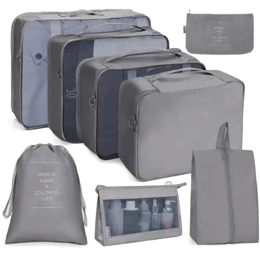 Tato praktická sada úložných organizérů je ideální způsob jak mít přehledně a bezpečně uložené věci a to jak ve skříni, tak příkladně i v cestovním kufru. Sada se skládá celkem z 8mi praktických organizérů mezi které patří příkladně úložná taška, kosmetická taštička, pytlík na boty a jiné. Organizéry jsou vyrobeny z kvalitního materiálu, některé jsou opatřeny zipem a disponují různými velikostmi, takže snadno uložíte nejen své oblečení, obuv, ale také příkladně kosmetické či hygienické potřeby.