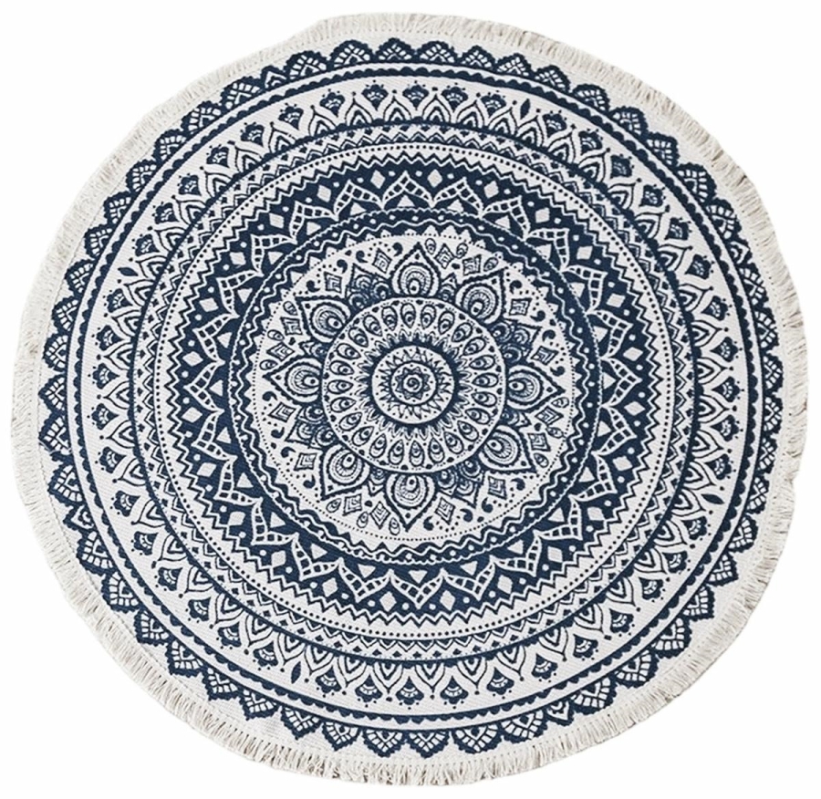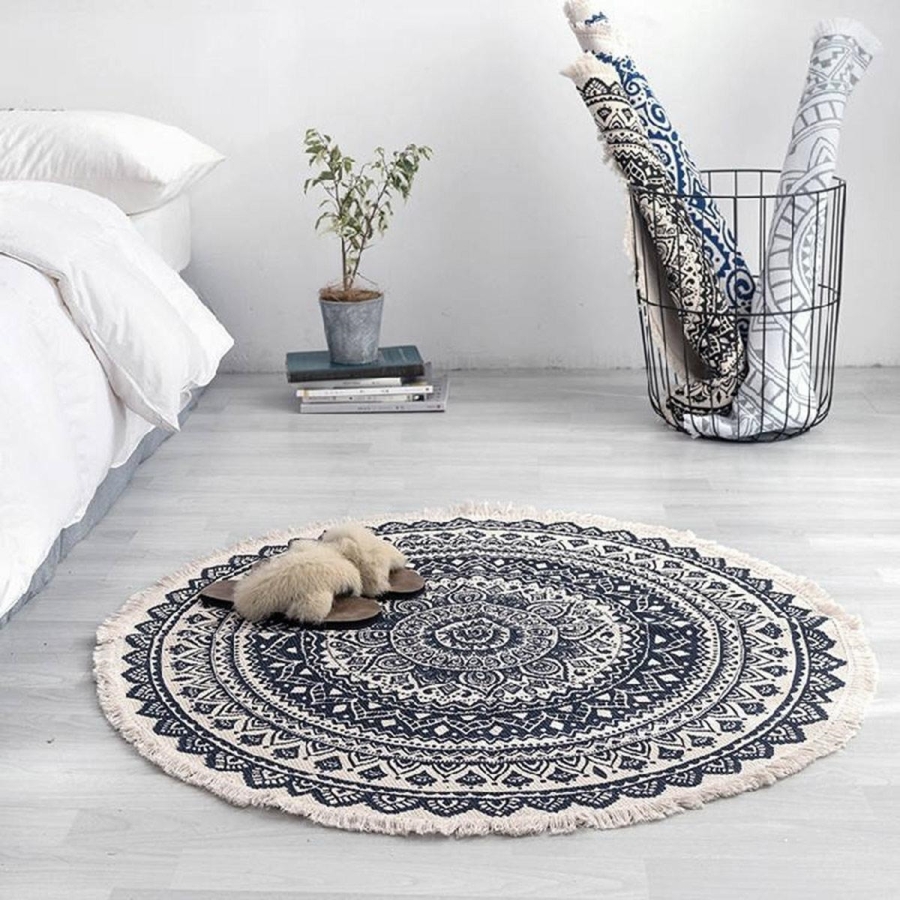 - Kulatý dekorativní koberec v boho stylu.