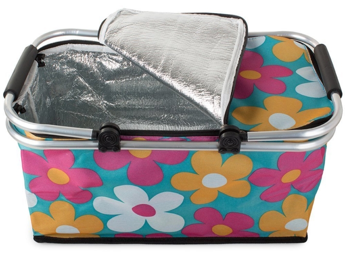 PIKNIKOVÝ KOŠÍK - TERMÁLNÍ SKLÁDACÍ - MODRÉ KVĚTY