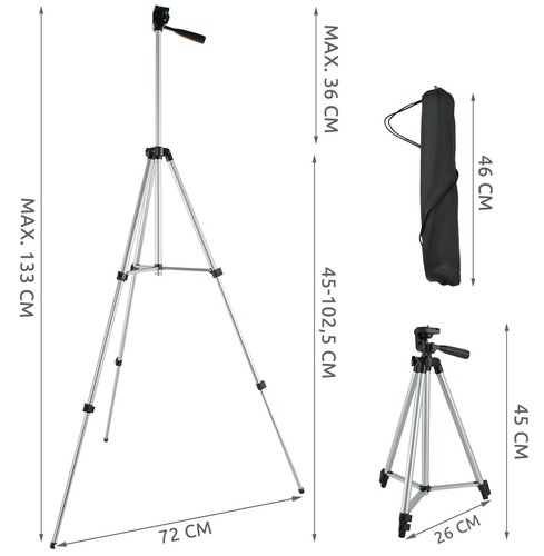 - Rozměry stativu (výška min / max): 45 cm - 102 cm