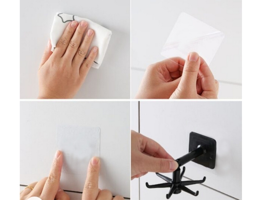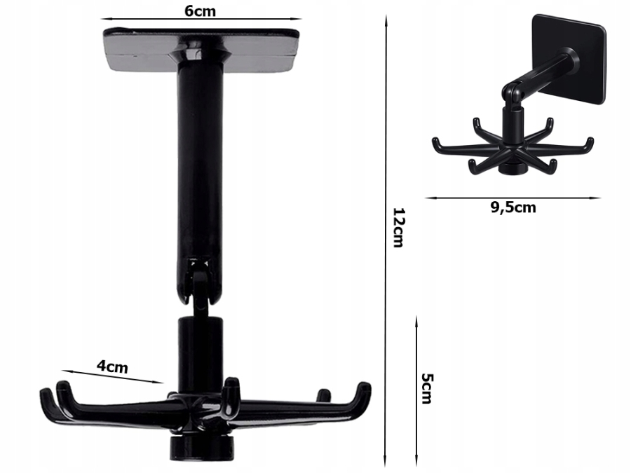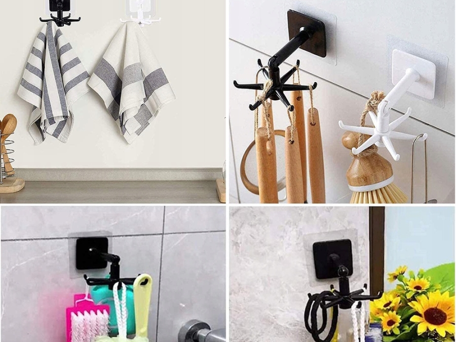 Závěs je připevněn lepidlem. Má 6 ramen. Jeho montáž je jednoduchá a intuitivní. Vše, co musíte udělat, je vyčistit a odmastit povrch, kam hodláte věšák umístit.