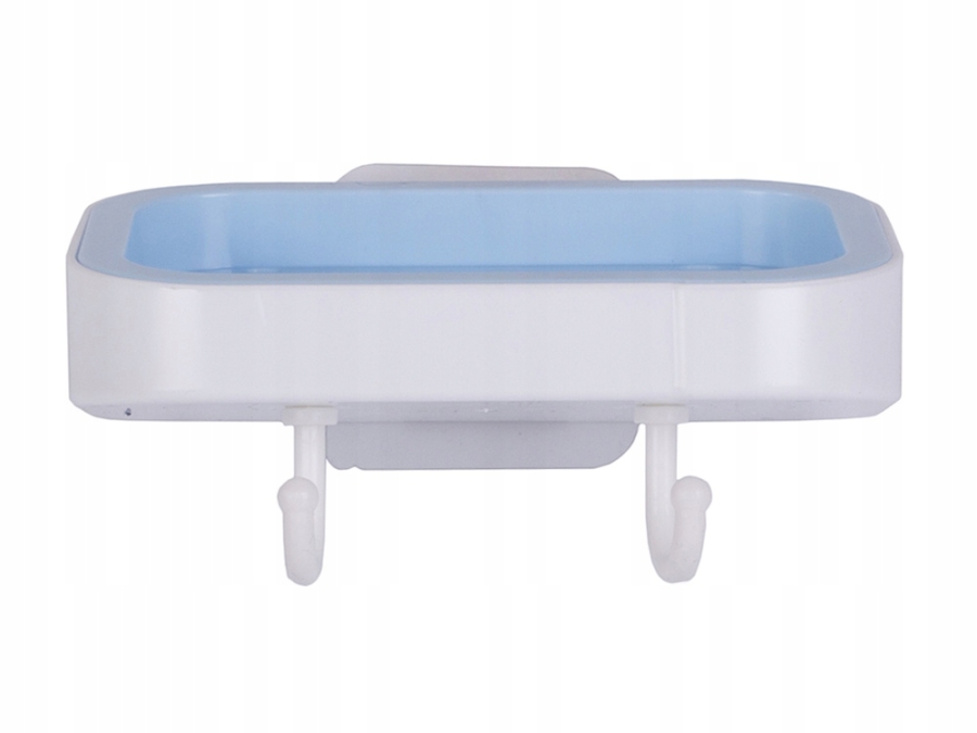 Mýdelnička má prostor na mýdlo a dva háčky na zavěšení různých koupelnových doplňků.
