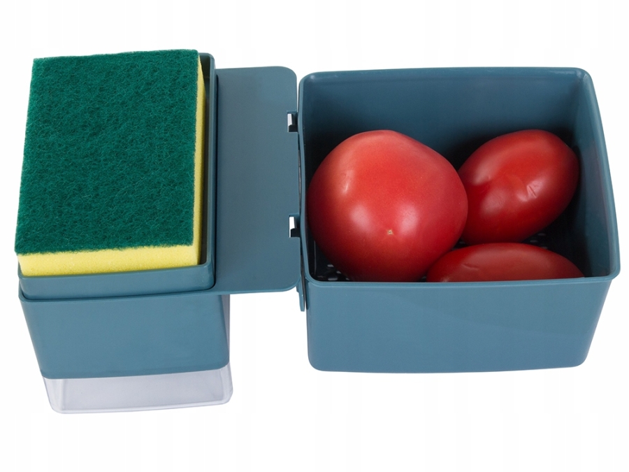 Snadná montáž nádoby na dřez. Organizér jednoduše zavěste mezi přihrádky. Nádobu na kapalinu můžete zavěsit i samotnou bez odkapávače.