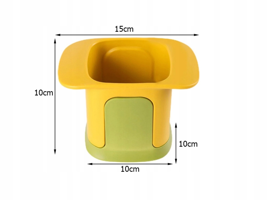 Stačí vložit např. brambor a energicky přitlačte a čepele jej bez problému nakrájí na kousky. Kráječ je také ideální pro krájení jiné zeleniny a ovoce, jako jsou: cukety, cibule, rajčata, okurky, papriky, jablka a hrušky. Zařízení se velmi snadno používá a čistí.