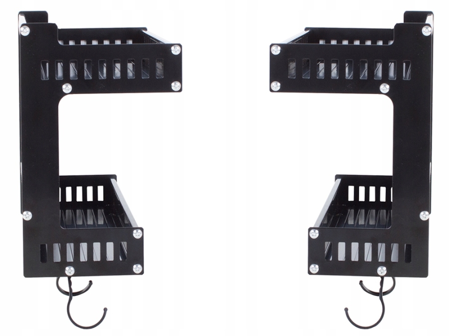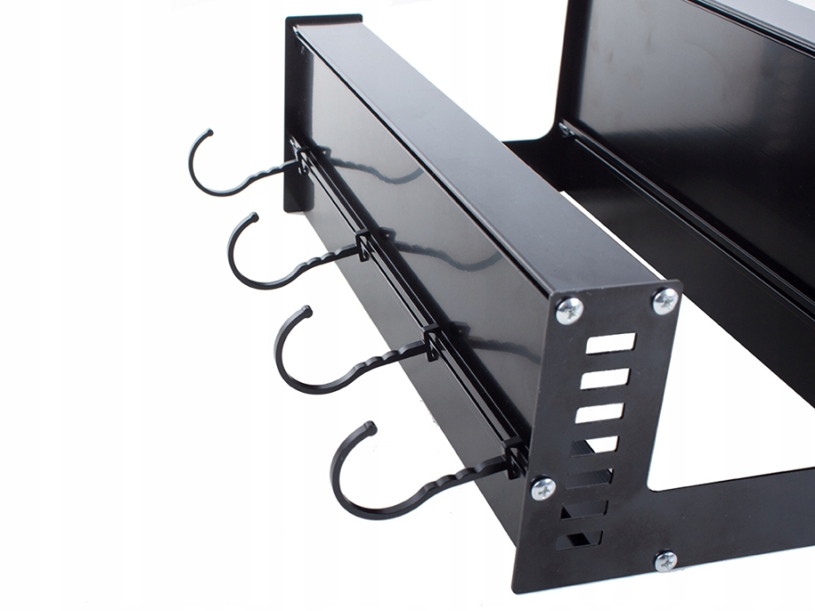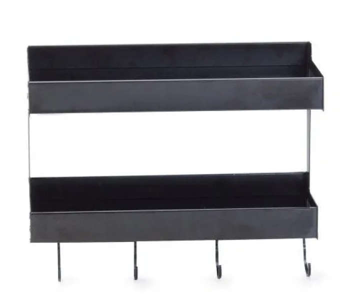 Regál je nerezový se dvěma policemi, vyrobený z hliníku s černou práškovou barvou, což pozitivně přispívá ke stabilitě a robustnosti celé konstrukce. Je vybaven čtyřmi závěsnými háčky (které lze vyjmout), na které můžete pověsit ručník, kuchyňské náčiní atd. Díky svému univerzálnímu tvaru se bude skvěle vyjímat v moderních, industriálních i tradičních místnostech.