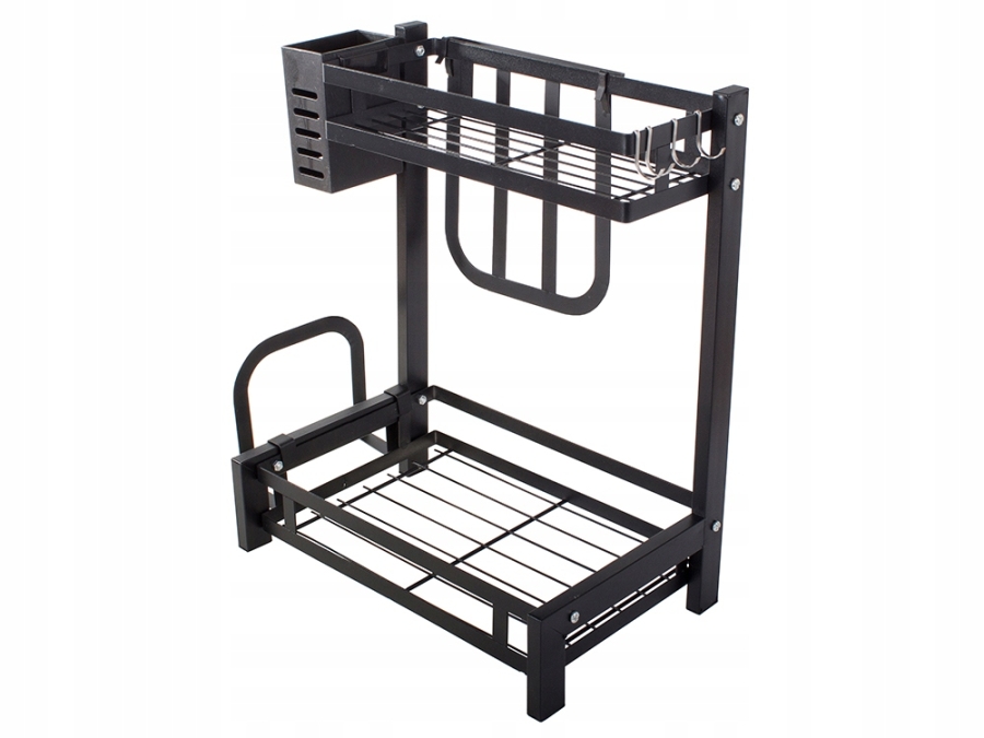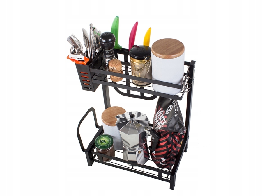 Kuchyňský organizér je vyroben z kvalitního kovu s práškovým nástřikem. Je odolný proti poškození vlhkostí v důsledku skladování vlhkého nádobí. Stabilní konstrukce umožňuje umístit na organizér i těžší předměty.