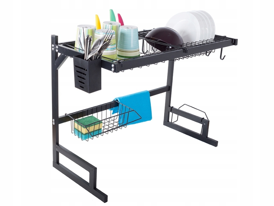 Kuchyňský odkapávač je nezbytným vybavením každé kuchyně. Je velmi praktický a úspěšně pojme mnoho kuchyňských doplňků. Je vybaven závěsným organizérem na příbory, závěsným košem a poličkou na prkénka. Ty lze upevnit kdekoli na okraj organizéru.