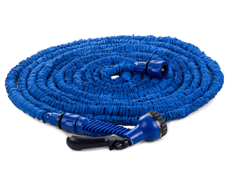 Ve srovnání s tradičními zahradními hadicemi je velmi lehká. Sahá od 5 metrů v klidu až po 15 metrů, když připojíte vodu. Díky tomu zabírá velmi málo místa.