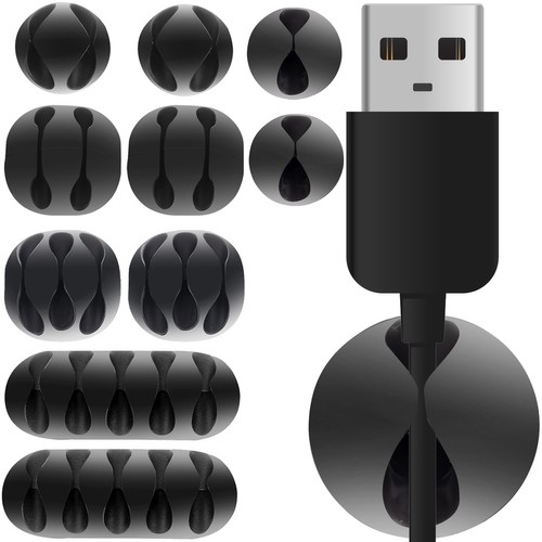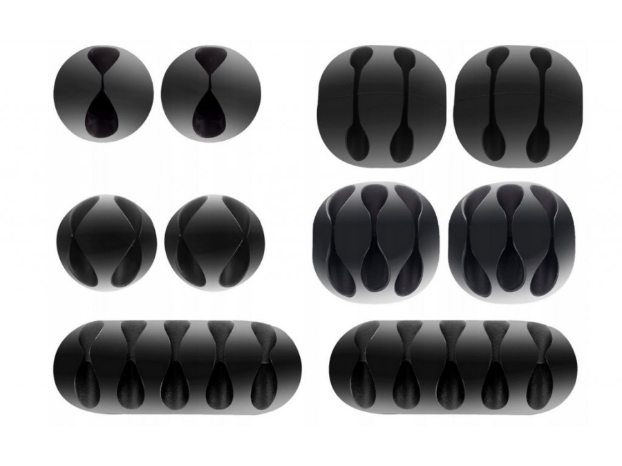 Tato sada obsahuje 10 držáků, které mají prohlubně, a ty pasují na většinu kabelů dostupných na trhu. Vyrobeno z pružného plastu odolného proti poškození. Sada samolepicích organizérů na elektrické dráty a kabely jsou velmi užitečné při organizaci "zamotaných" kabelů. Navíc můžete do organizérů vložit psací potřeby. Můžete je pevně připevnit na vybranou rovnou plochu. Výrobek je opatřen oboustrannou lepicí páskou, která umožňuje jeho přilepení na zeď, stůl apod. V případě potřeby můžete organizér také odlepit, aniž byste riskovali poškození vršku. Sada se skládá z 10 organizérů 3 různých tvarů. Můžete si je upravit podle svých potřeb, mimo jiné pro jeden, dva, tři nebo dokonce pět kabelů.