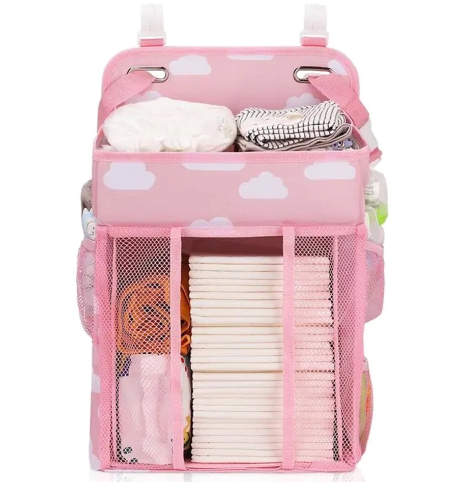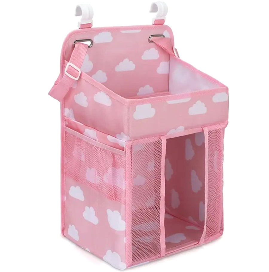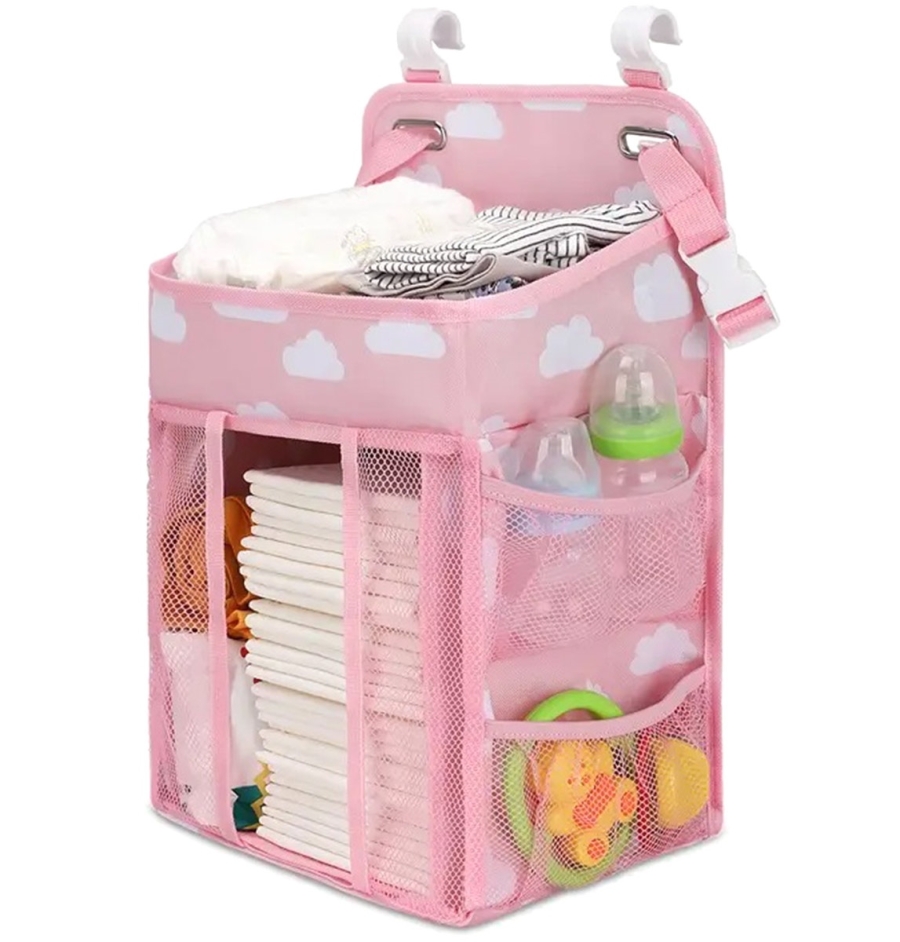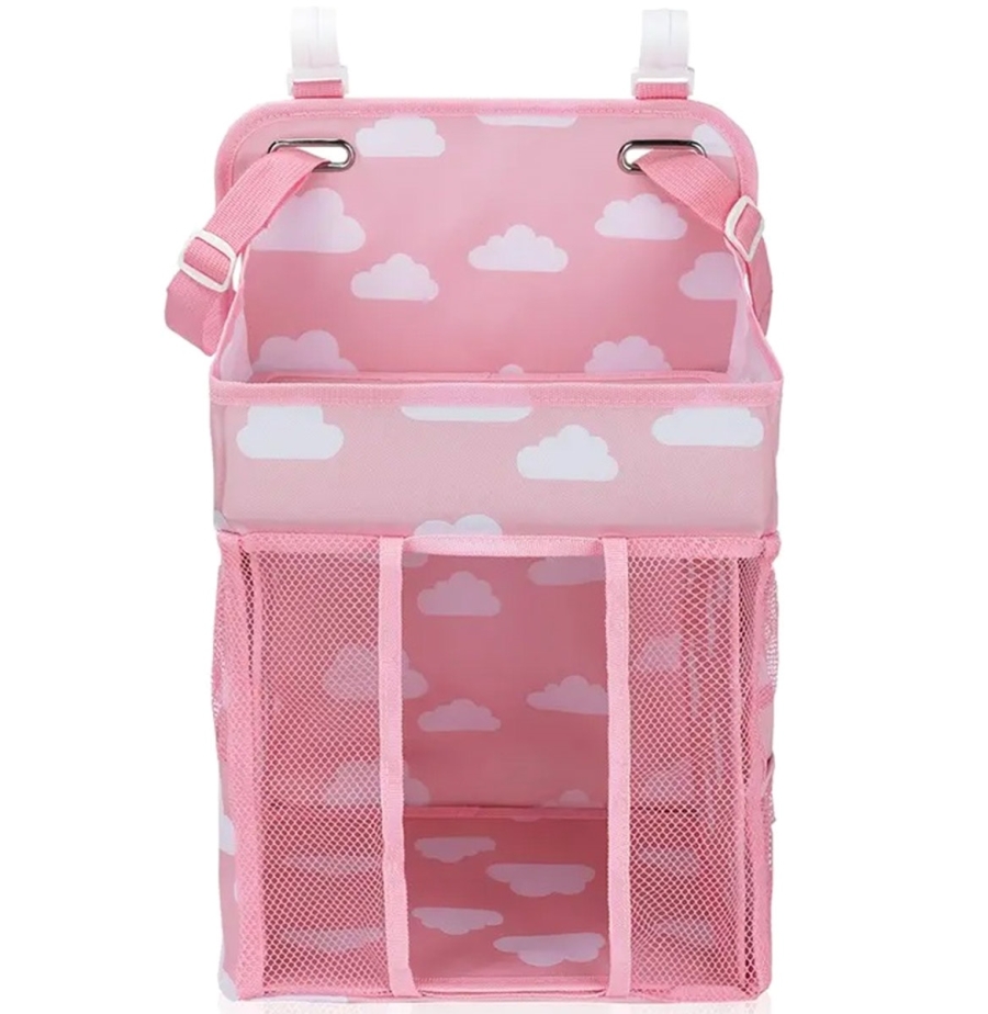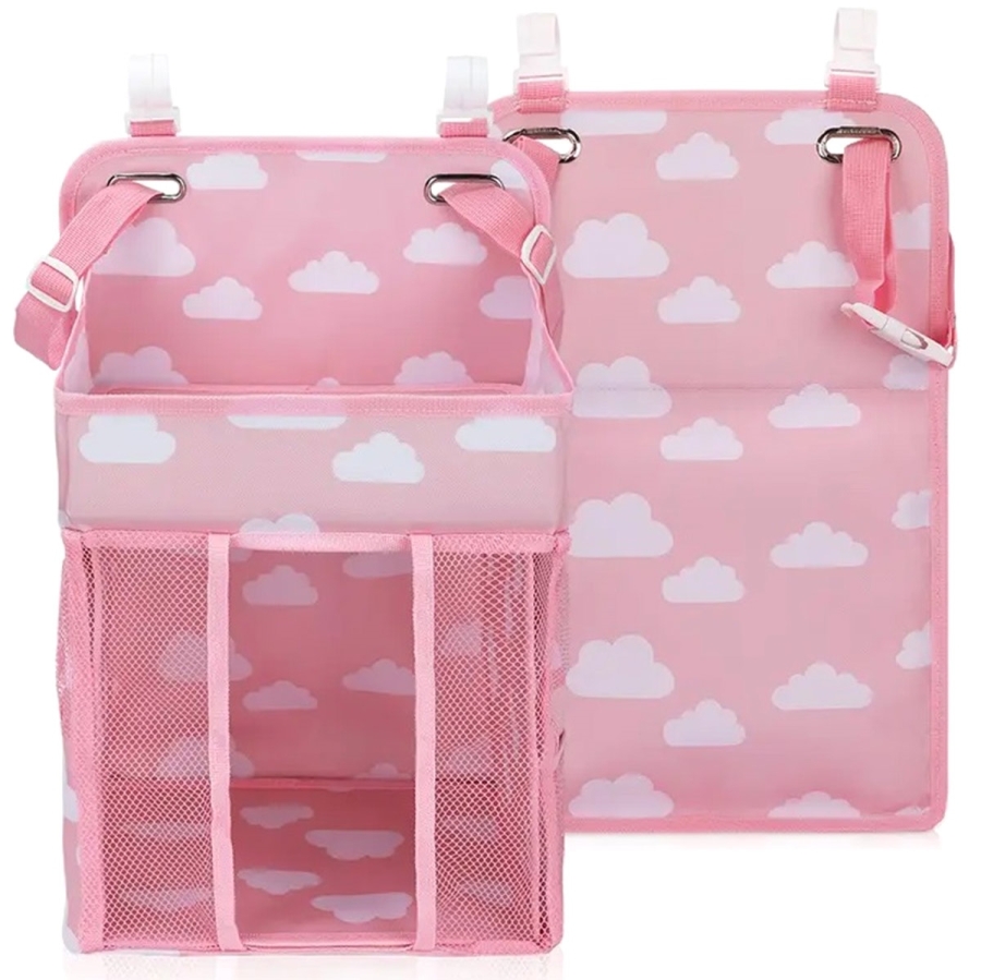 Praktický a funkční organizér do dětské postýlky. Organizér lze snadno zavěsit na okraj postele díky přiloženým úchytům. Vybaveno spoustou kapes a přihrádek, které úspěšně pojmou zásobu oblečení a plen, láhve na mléko, hygienické potřeby a další potřebné předměty.