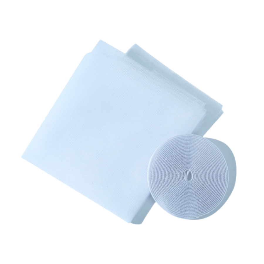 Moskytiéra je vyrobena z extrémně odolného bílého polyesterového materiálu.