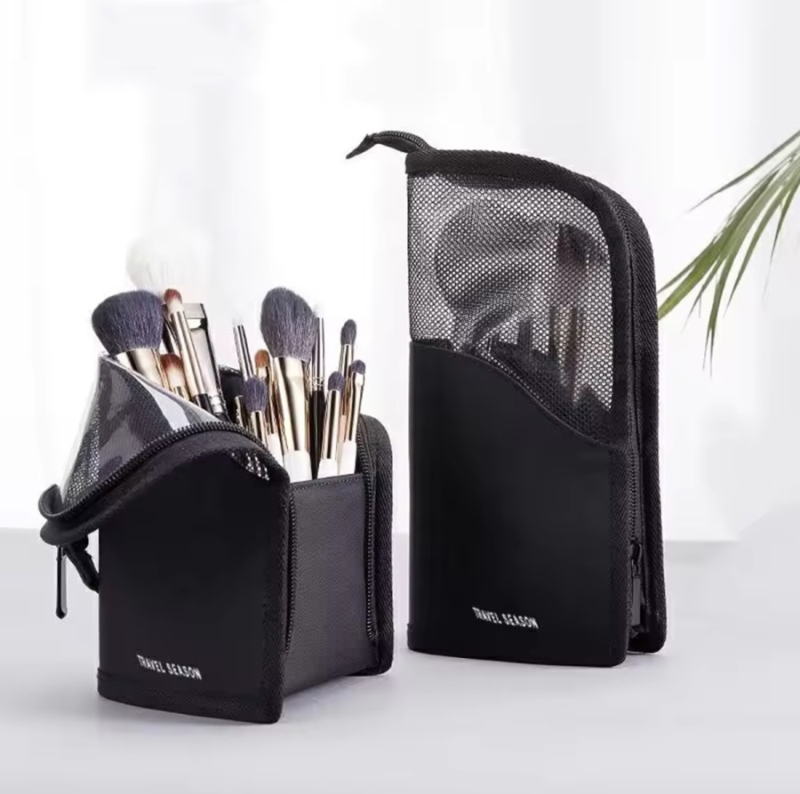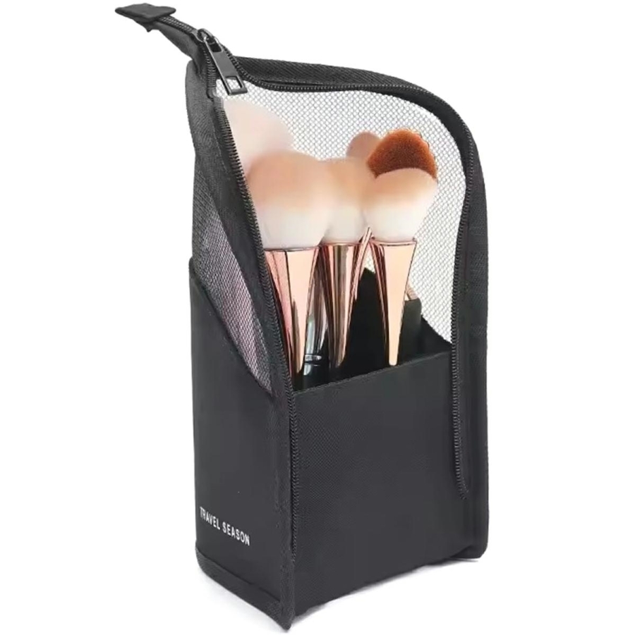 Praktická a kompaktní kosmetická taška a pouzdro na štětce. Vyrobeno z pevného plastu odolného proti postříkání. Praktický zip umožňuje rychlý přístup k obsahu kosmetické tašky. Průhledné okénko v horní části umožňuje nahlédnout dovnitř. Promyšlená konstrukce (výška) usnadňuje umístění i dlouhých štětců a dalších pomůcek.