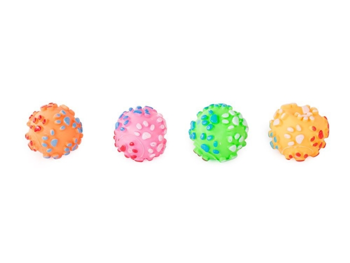 Hledáte vhodnou hračku pro vašeho pejska, která ho zabaví v případě vaší nepřítomnosti? Co takhle tento gumový pískací míček. Míček je vyroben z pevného materiálu, doplněn o masážní hroty, o velikosti 7 cm. Při stisku míček vydává zvuky, což zajisté zaujme vašeho domácího mazlíčka.