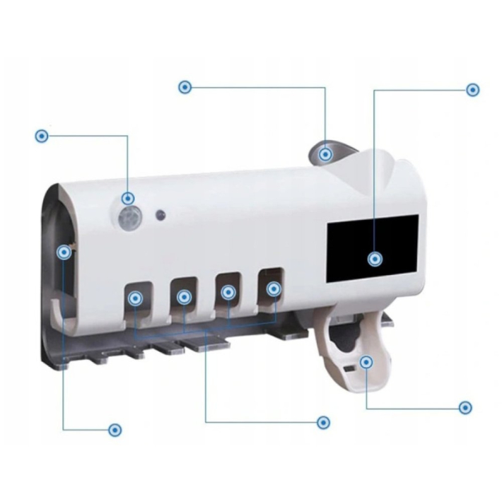 Dávkovač zubní pasty UV držák na zubní kartáčky - bílý