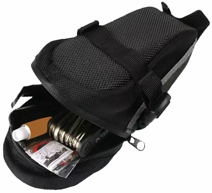 Praktická univerzální brašna na sedlo kola umožňuje pohodlně a bezpečně přepravovat drobné předměty. Snadno sestavitelné, vyrobené z pevných a voděodolných materiálů.