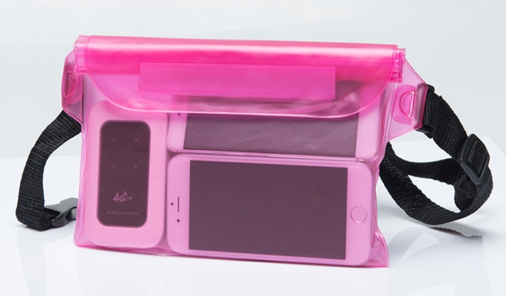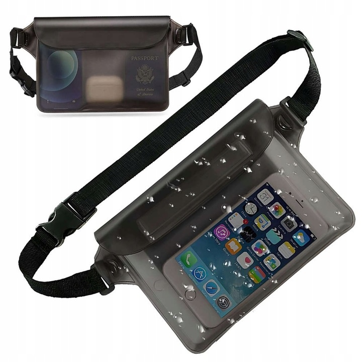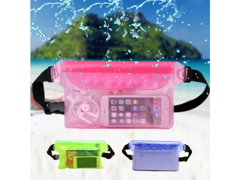 Pohodlná a lehká bederní taška z voděodolného materiálu. Ideální na nošení v létě, kdy vás přitahuje slunce a koupání. Taška má nastavitelný popruh a vodotěsnou přihrádku, do které se vejde mobilní telefon, klíče, peníze a další.