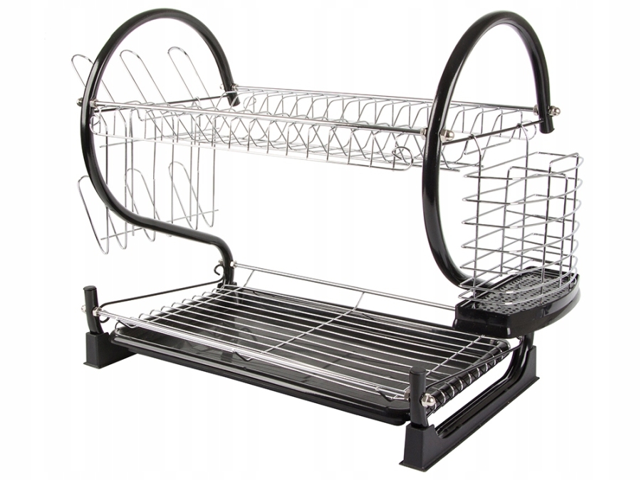 Dvoupatrový odkapávač na nádobí je nezbytným vybavením každé kuchyně. Je velmi praktický, se dvěma úrovněmi, do kterých se vejde velké množství talířů, misek a sklenic. Navíc má dva závěsné držáky. Jeden na příbory a jeden na skleničky.