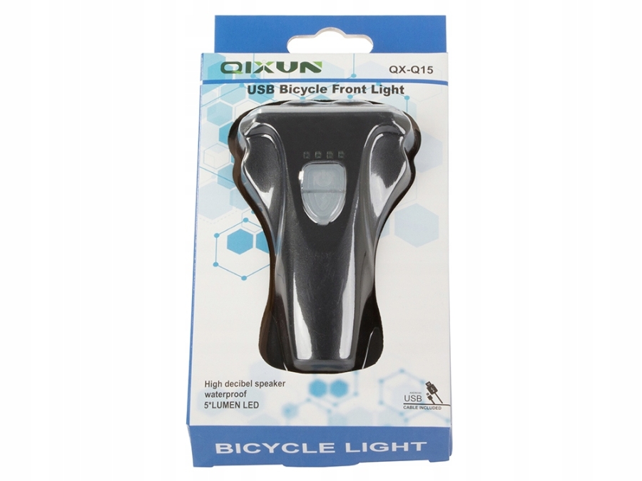 Držáky obsažené v sadě umožňují neinvazivní připevnění svítilny na téměř jakýkoli rám jízdního kola. Světlo je vybaveno pogumovaným vypínačem, který během provozu svítí modře.