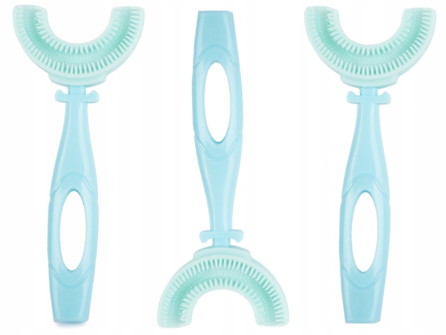 Silikonový zubní kartáček ve tvaru U s četnými výstupky, usnadní čištění zubů u malých dětí a batolatům mnohem zpříjemní. Ergonomický design kartáčku usnadňuje čištění těžko dostupných míst v ústech. Hlava kartáčku je měkká a přizpůsobí se malým ústům.