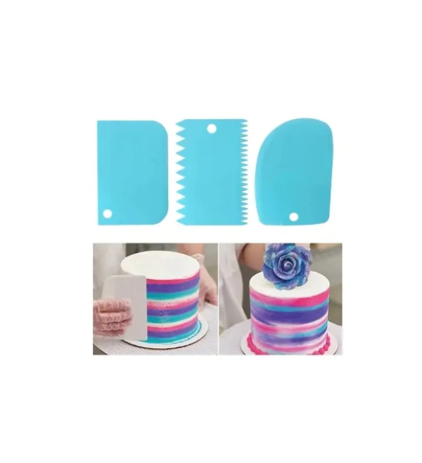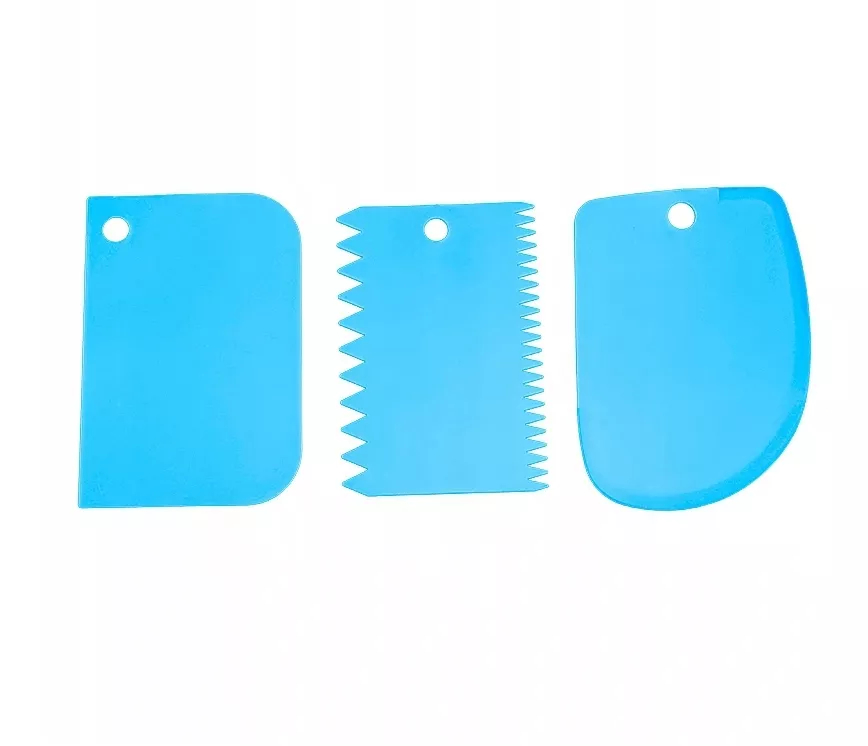 Tato praktická sada cukrářských špachlí je ideální pomůcka pro zdobení dortů. Stěrky jsou vyrobeny z kvalitního, pevného plastu, který zaručí svému uživateli snadné a bezproblémové používání.