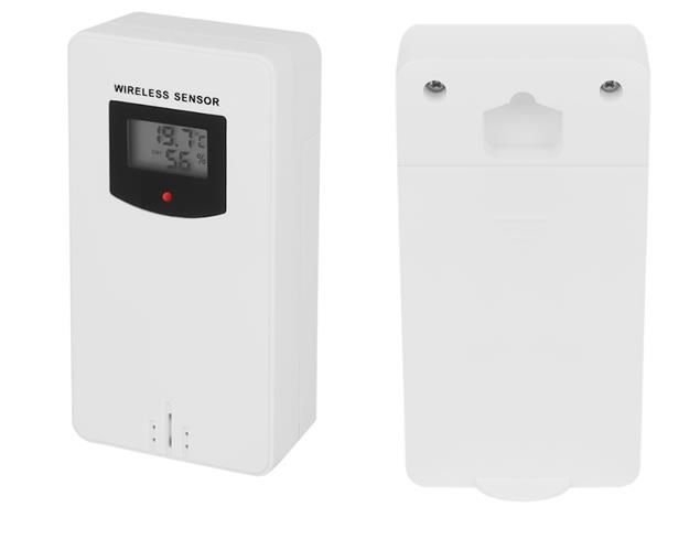 EXTERNÍ SNÍMAČ - umístěním čidla venku bezdrátově zasílá naší stanici aktuální informace o počasí - aktuální teplotu a vlhkost vzduchu. Jeho dosah je až 60m – dobře poslouží i ve velkém domě. Senzor má také displej, kde vidíme teplotu a vlhkost vzduchu.