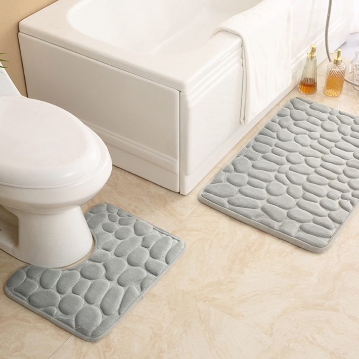 Dokonalý koupelnový set s příjemnou texturou. Set se skládá ze dvou koberečků - klasického koupelnového koberečku a potahu na záchodové prkénko. Už vás nebaví utírat své stopy na mokré podlaze v koupelně? Investujte do koberečku, který účinně absorbuje vlhkost a podlaha ve vaší koupelně bude suchá a ušetříte si další úklid. Díky použitému materiálu jsou koberce měkké, pružné a příjemné na dotek. Mají také schopnost zapamatovat si tvar našich nohou! Na obkladu v koupelně je určitě nerozmrazíte. Díky speciálnímu PVC dnu je protiskluzová.