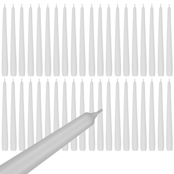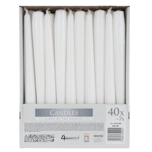 Legendární a nadčasová svíčka o průměru 2,3 cm a výšce 24,5 cm. Tato kónická stolní svíčka je ideálním, univerzálním dekorativním prvkem, který bude fungovat jak jako prvek vánoční výzdoby (včetně vánočních ozdob, velikonoční výzdoby), tak i jako prvek interiéru (tj. hodovní síně, svatební síně, kostely, kaple), ve kterých bude akce probíhat. V sadě se nachází 40 ks svíček, které jsou velmi působivé díky svým rozměrům a výdrži až 7 hod.