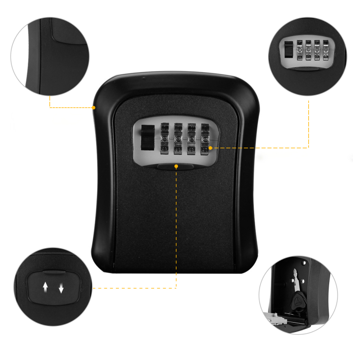 Tato praktická, bezpečnostní schránka na klíče s kombinačním zámkem je perfektním řešením pro uložení klíčů, magnetických karet a dalších důležitých předmětů, které chcete mít v bezpeční příkladně v době vaší nepřítomnosti a současně mít zaručený snadný přístup k nim. Díky ocelové konstrukci je trezor odolný vůči poškození, takže ji můžete bez obav namontovat i mimo váš domov. Díky až 4 číslicím kódu je zajištěno bezpečí obsahu a současně pravděpodobnost, že třetí strana prolomí vámi vymyšlený kód je 1:10 000. Neváhejte a pořiďte si tento bezpečnostní trezor kompaktních rozměrů do vašich domovů, firem, kanceláří či provozoven.