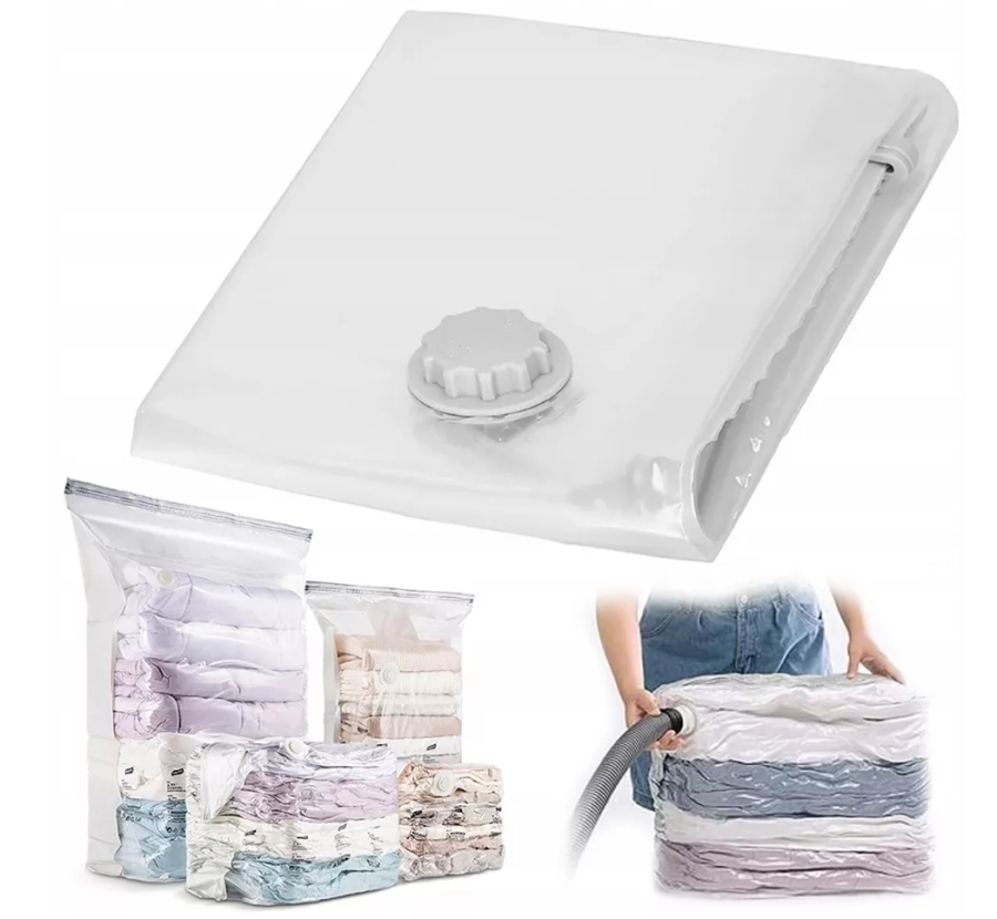 Tento úložný, vakuový pytel o rozměru 60 x 40 cm je ideální způsob, jak bezpečně uložit vaše textílie a to s maximální úsporou místa. Díky tomuto úložnému systému budete mít pořádek ve vašich skříních, šatnách či kdekoli, kde jen budete potřebovat. Vakuový pytel současně díky svému provedení účinně ochrání vaše výrobky proti hmyzu, bakteriím či nežádoucí vlhkosti. Vakuové sáčky jsou navrženy tak, aby díky svému systému dokázaly zmenšit objem vašeho oblečení až o 80%.