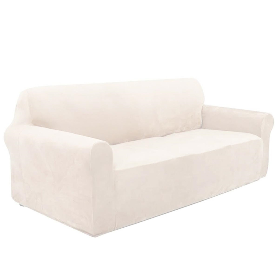 Univerzální potah na standardní 3místnou pohovku. Vyrobeno z materiálu příjemného na dotek imitujícího samet. Vysoká roztažnost a elastický pás usnadňují natažení přes sedák a opěradlo pohovky. Lze prát v pračce (na 30 stupňů).