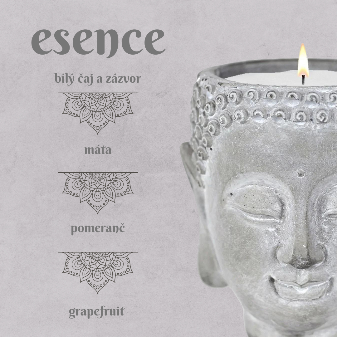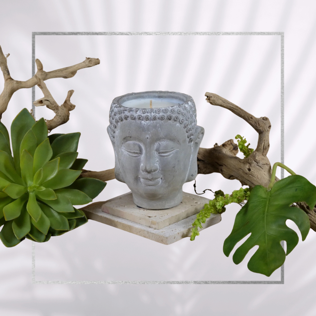 Přineste do svého domova klid a vůni s naší exkluzivní svíčkou v cementové hlavě Buddhy.