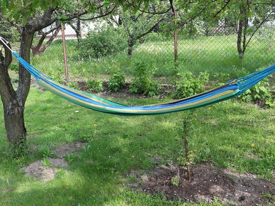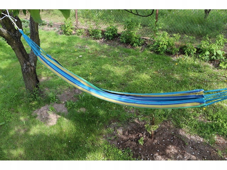 Hamaka je perfektní věc pro každého, kdo rád tráví svůj volný čas v přírodě. Jednoduše přivažte dva konce houpací sítě ke stromům nebo pevným sloupkům a užijte si pohodlí. Sada je dodávána se dvěma šňůrami, kterými můžeme naši houpací síť upevnit. Můžete si v něm například číst knihu a přitom se jemně pohupovat v měkké houpací síti.