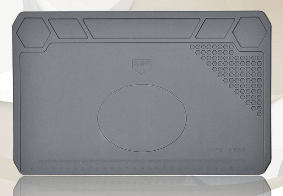Silikonová podložka je určena pro servis elektronických zařízení, GSM, foto a mnoho dalšího. Používá se k segregaci a znehybnění elektronických dílů a součástek, všech kovových prvků a šroubů při opravách smartphonů, tabletů, notebooků a jiných. Podložka je vyrobena ze silikonu odolného teplotám. Díky tomu lze pájet přímo na DPS umístěné na podložce. Protiskluzové vlastnosti silikonu pomáhají při pájení, protože předměty se nepohybují.