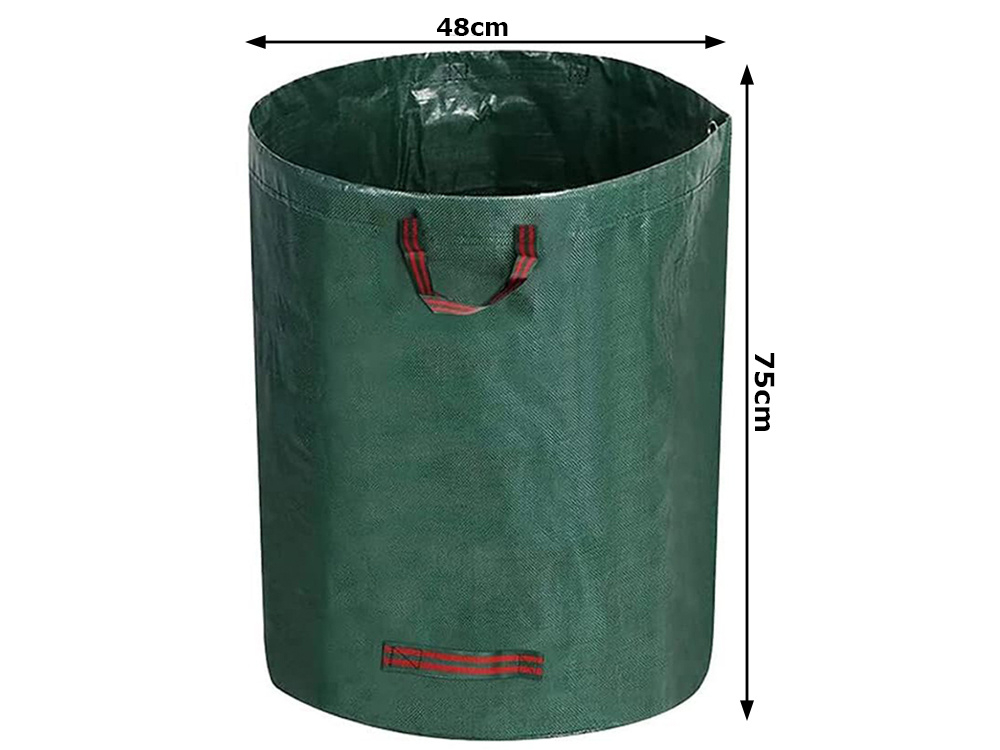 Pytel je vyroben z pevného a odolného materiálu, který je ideální do náročných venkovních podmínek. Je odolný proti roztržení i vlhkosti, takže do něj můžete bezpečně ukládat zahradní odpad bez obav o jeho trvanlivost.