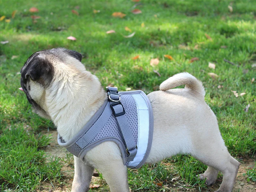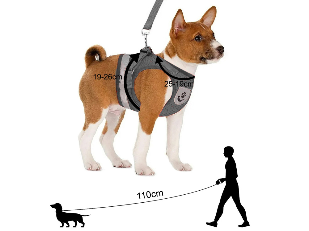 Postroje jsou vyrobeny z vysoce kvalitních a odolných materiálů a poskytují bezpečné a pohodlné nošení. Jejich beztlaková konstrukce eliminuje možnost tlaku nebo podráždění kůže vašeho psa, takže jsou ideální pro malá i větší plemena.