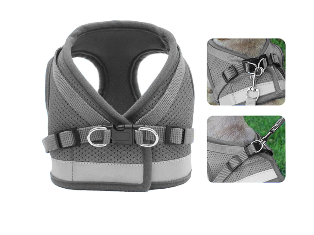Postroje jsou vyrobeny z vysoce kvalitních a odolných materiálů a poskytují bezpečné a pohodlné nošení. Jejich beztlaková konstrukce eliminuje možnost tlaku nebo podráždění kůže vašeho psa, takže jsou ideální pro malá i větší plemena.