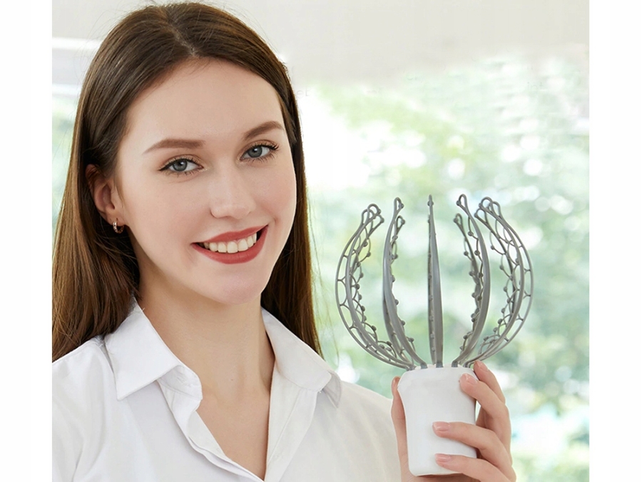 Masáž hlavy účinně pomáhá uvolnit namáhané svaly, zmírňuje bolesti hlavy a migrény. Pomůcka je lehká a přenosná – můžete si ji vzít do práce, na schůzku, na výlet. Je jednoduchá a snadno se používá v kanceláři nebo doma.
