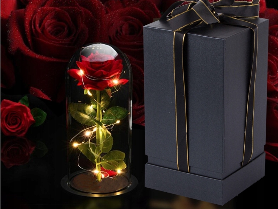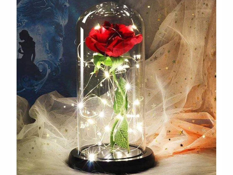 Věčná růže ve skle s osvětlením je netradiční dárek, který svým kouzlem potěší nejen oko, ale také roztaví srdce. Je to perfektní dárek k výročí, narozeninám, Valentýnu, zásnubám nebo jako jedinečný dekorační kousek.