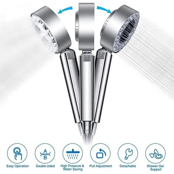 Oboustranná sprchová hlavice 2v1 s dávkovačem mýdla je sprchová hlavice, která je vyrobena z kvalitního materiálu, minimalistického designu, což zajistí, že se skvěle bude hodit do jakékoli koupelny.