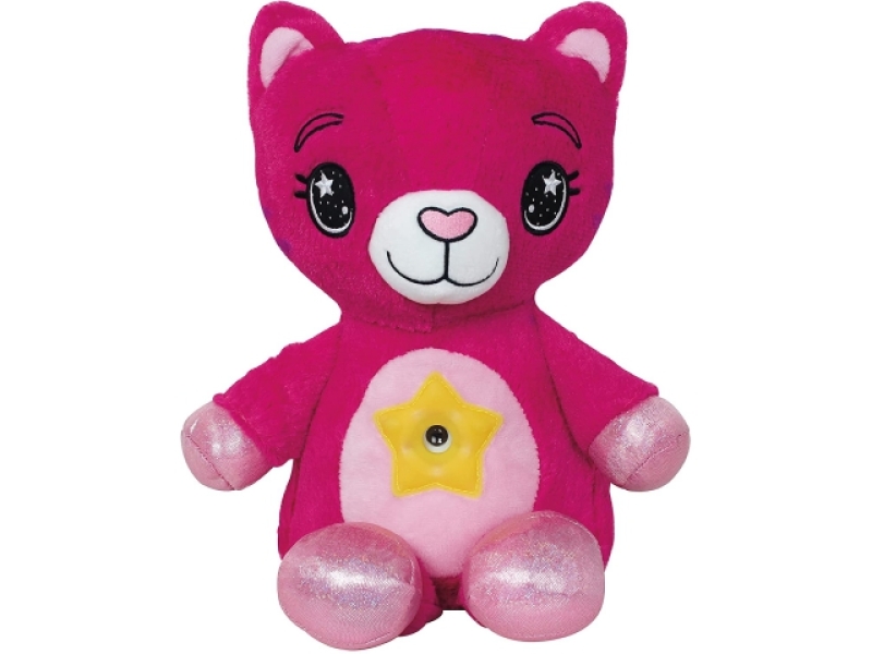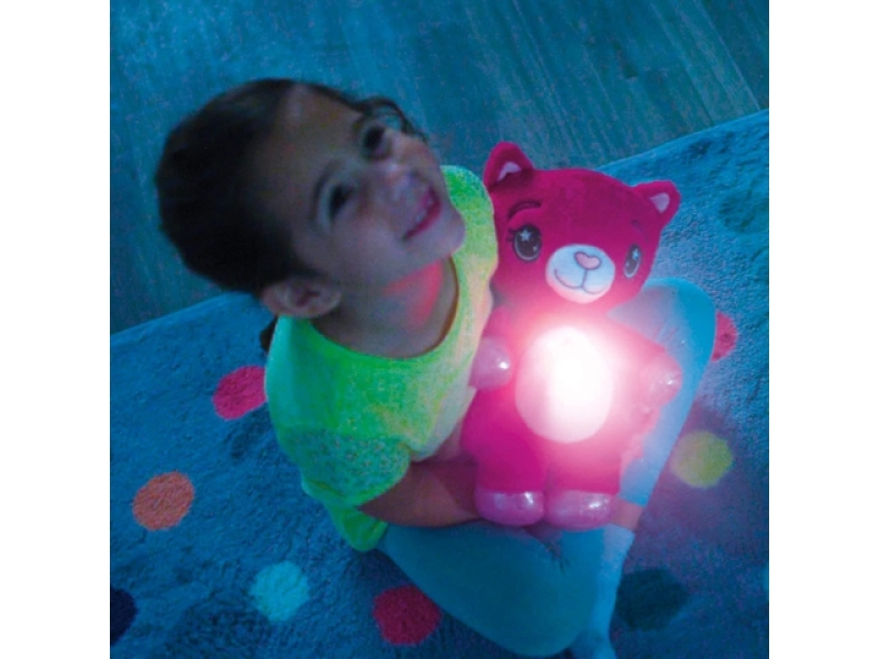 Tento plyšový medvídek je nejen plyšovou hračkou, která zajisté potěší vaši ratolest, ale je také projektorem, který vytváří zářící hvězdy a zajímavé tvary vznášející se po stěnách či na stropě. Břicho medvídka jemně svítí a vaše dítě pocítí úlevu od klasického nočního světla.