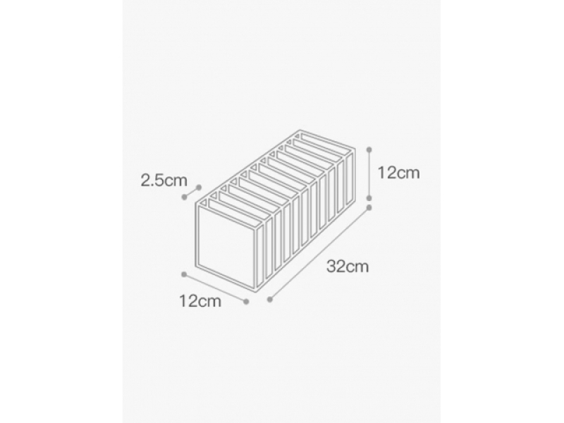 - Rozměry: 32 cm x 12 cm x 12 cm - vzdálenost mezi přihrádkami 2,5 cm