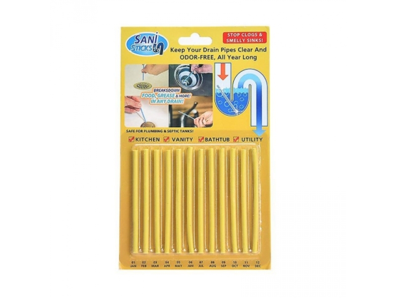 Tyčinka si poradí s tuky a zbytky jídla, které způsobují ucpání a nepříjemné pachy. Díky použití přírodních bakterií a enzymů rostlinného původu udržují odtoky volné a zajišťují čistou vůni. Každé balení obsahuje 12 tyčinek, což postačuje na prevenci ucpání a zápachu po dobu 1 roku.