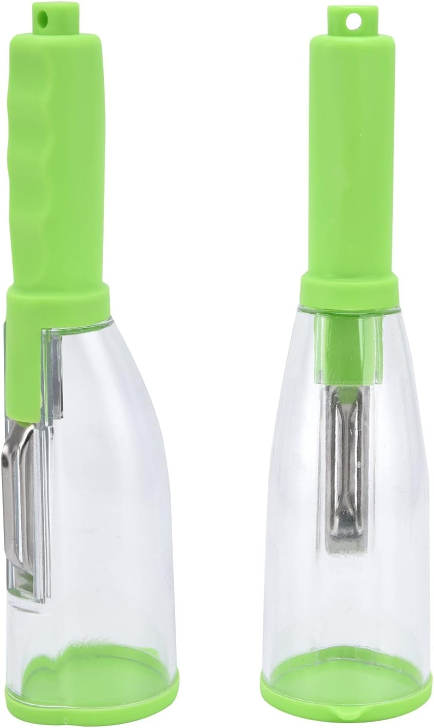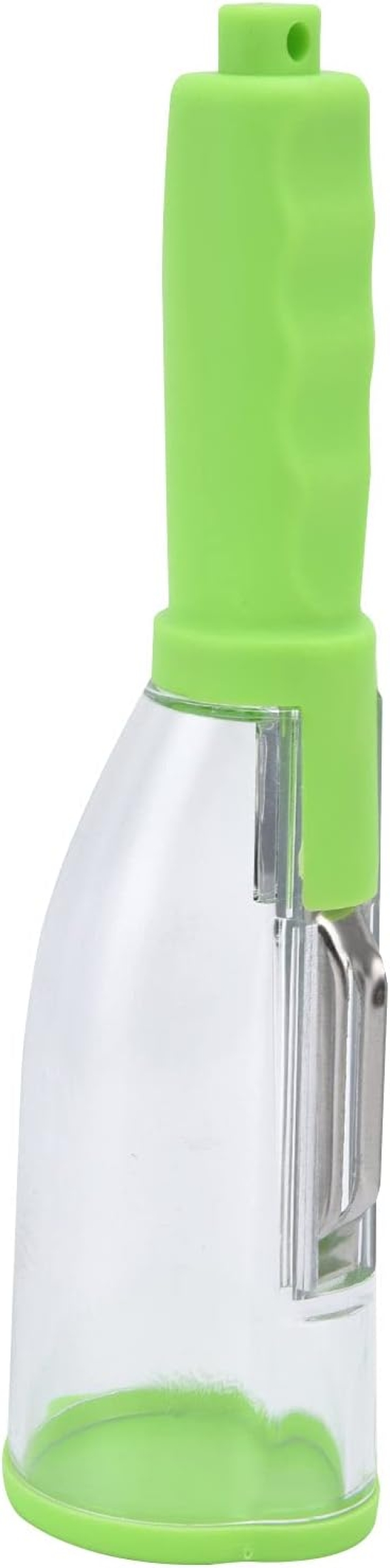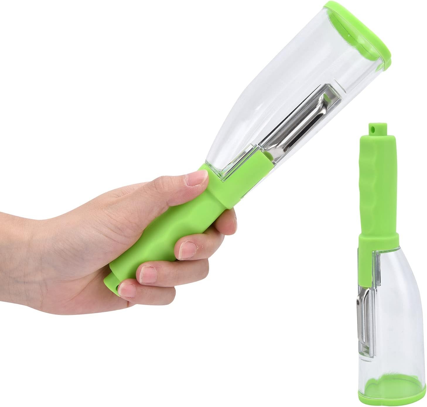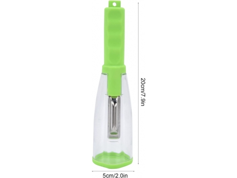 Nápadná a praktická škrabka s vestavěným zásobníkem na slupky.