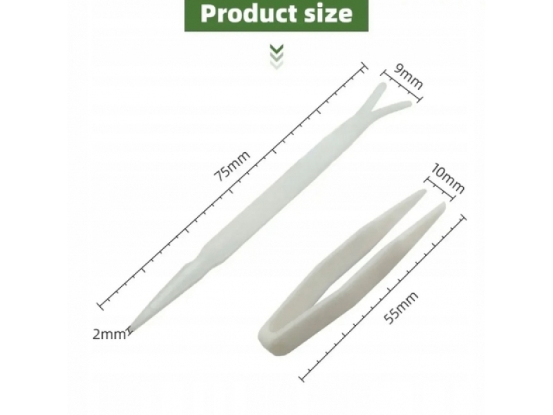 - 20x menší, podobný pinzetě: Slouží k odlepení pásky z fólie a jejímu přiložení na oční víčko.