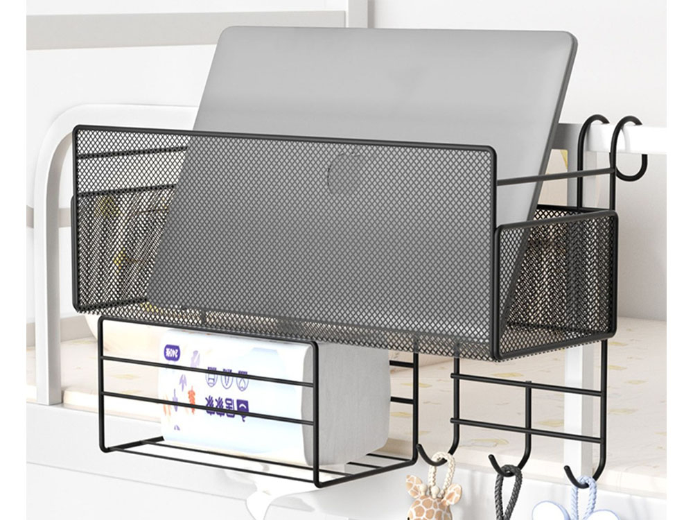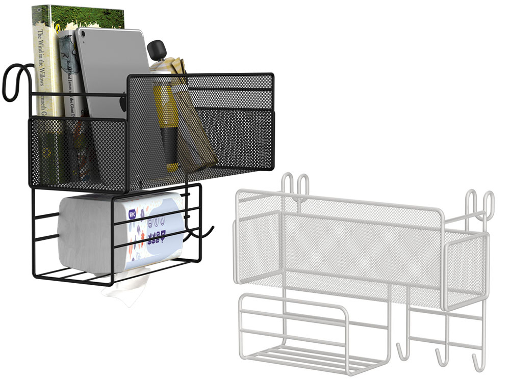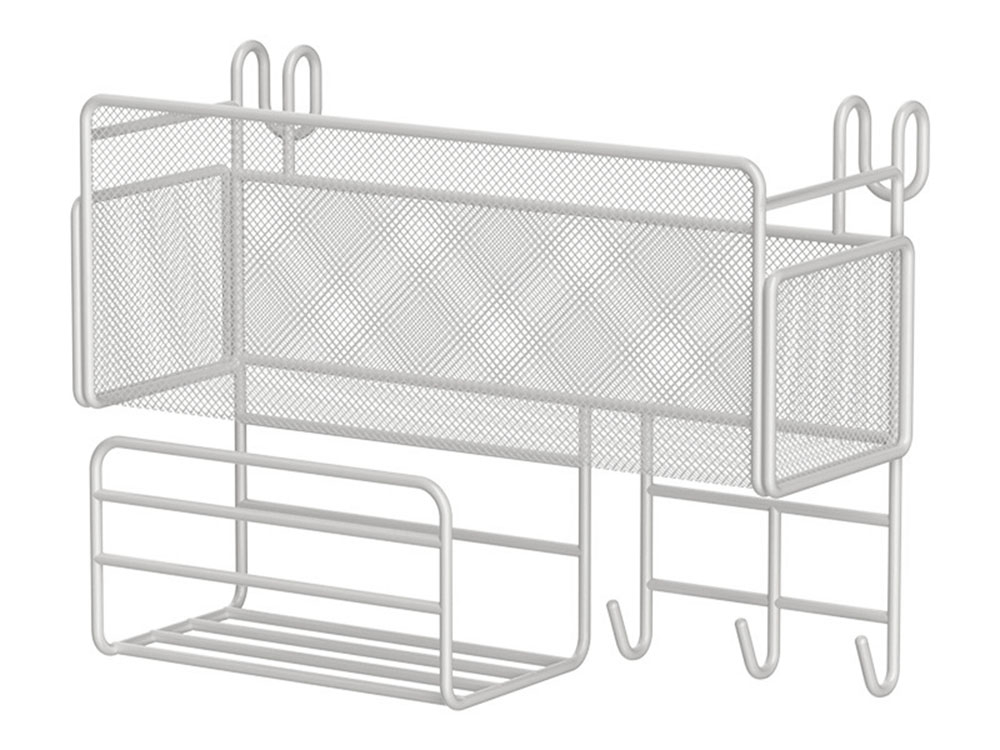 Nástěnný organizér je vybaven prostornou policí, která je ideální pro uložení knih, tabletů, kosmetiky nebo jiných doplňků. Další prostor na kapesníky a tři háčky poskytují ještě více funkčnosti a usnadňují udržování pořádku.