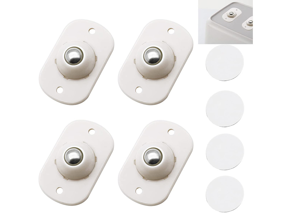 Univerzální kuličková kolečka pro nábytek, přepravky, boxy, různé typy skříněk, odpadkové koše atd. Otočná kolečka umožňují plynulé přemisťování různých předmětů, aniž by drhla podlahu nebo skříně Nepoškrábou a nezanechávají stopy na povrchu. Kolečka se připevňují pomocí oboustranné pásky. Kolečka mají také otvory pro šrouby. Otáčení koleček je přesné a tiché.