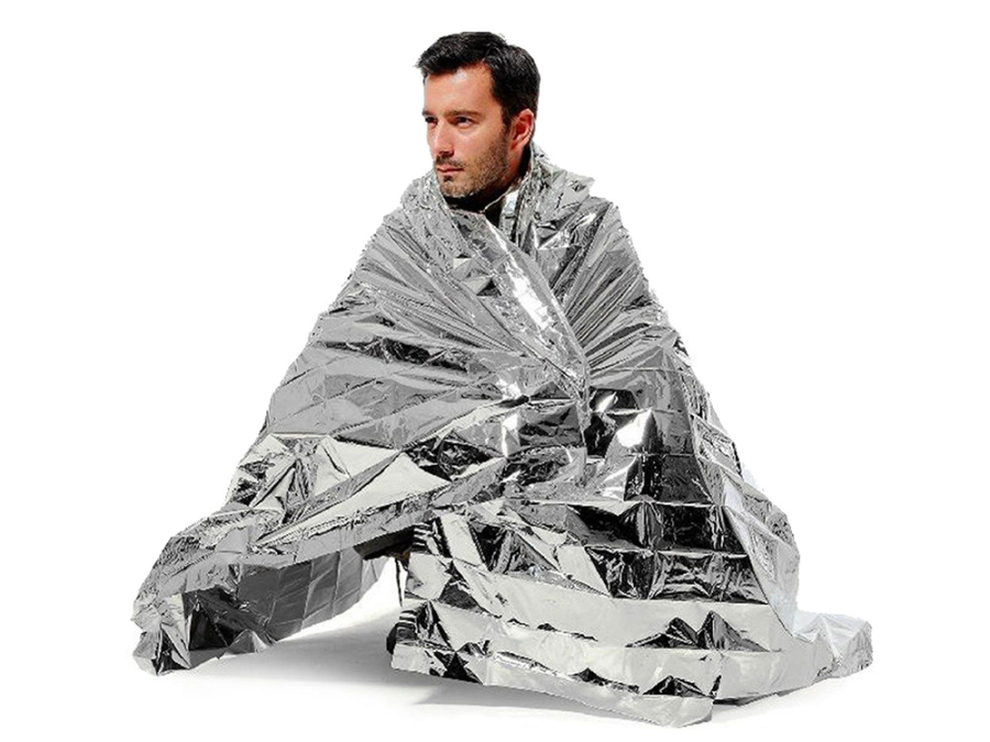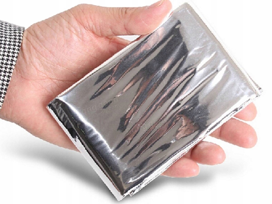 Termo deka ze stříbrné fólie, 160cm x 210cm, zabraňuje prochladnutí těla v extrémních situacích, zlepšuje tepelný komfort. Chrání před nepříznivými vlivy povětrnostních podmínek - chlad, déšť, horko, vítr.