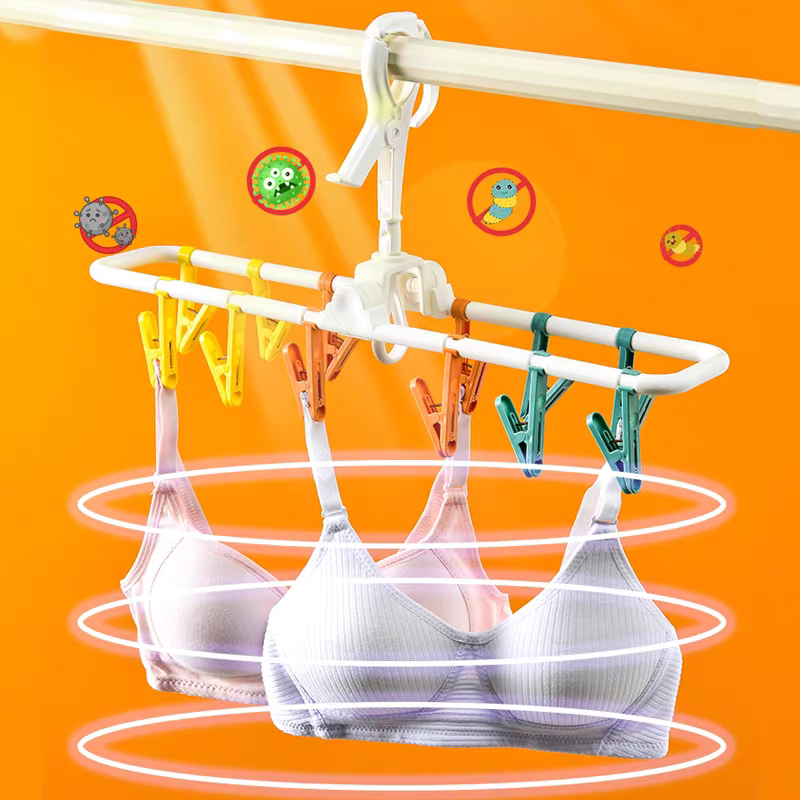 Tento skládací sušák na spodní prádlo je praktická pomůcka nejen do vaší domácnosti, ale také na cesty. Díky svému provedení zabere málo místa a tím pádem je velmi skladný. Sušák je opatřen i kolíčky, což umožní snadné zavěšení prádla.