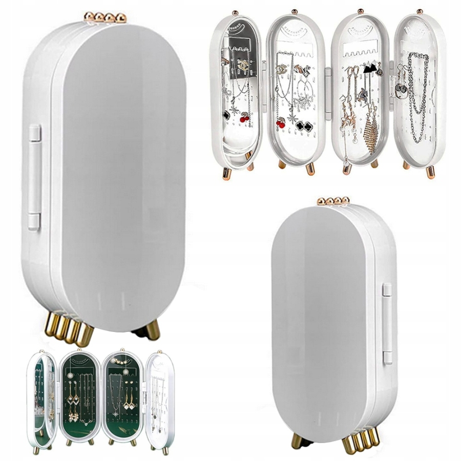 Velmi prostorný organizér, který vám umožní uspořádat vaše šperky a další ženské drobnosti. Pouzdro se složí jako harmonika. Tři části obsahují různé šperky, zatímco čtvrtá část obsahuje velké zrcadlo.